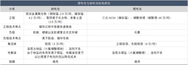 1、 成本低 (原材料成本低-碳酸锂 45 万/吨,碳酸钠 4000 元/吨、集流体成本低-锂电池使用铜箔 8 万/吨,铝箔 3万/吨)